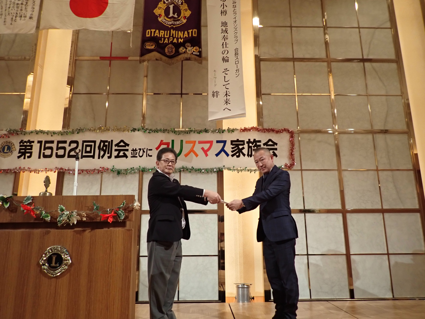 12月 20 第65回クリスマス家族会記念アクティビティ 2025年12月24日(水) アクティビティ 小樽みなとライオンズクラブ NEW 第65回クリスマス家族会記念アクティビティとして、小樽市内保育園・幼稚園44施設へ児童図書購入費として各施設へ¥10,000合計¥440,000を寄付。当日すこやか保育園代表Ⅼ二口へ目録を手渡しました