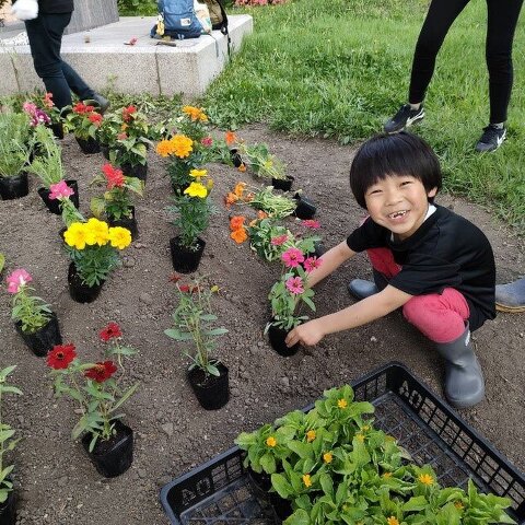 5/17 小樽市役所ガーディニングボランティア隊による花の植え込み作業が...