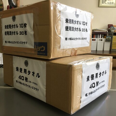 災害用備蓄未使用タオル50枚・使用済みタオル30枚を送る