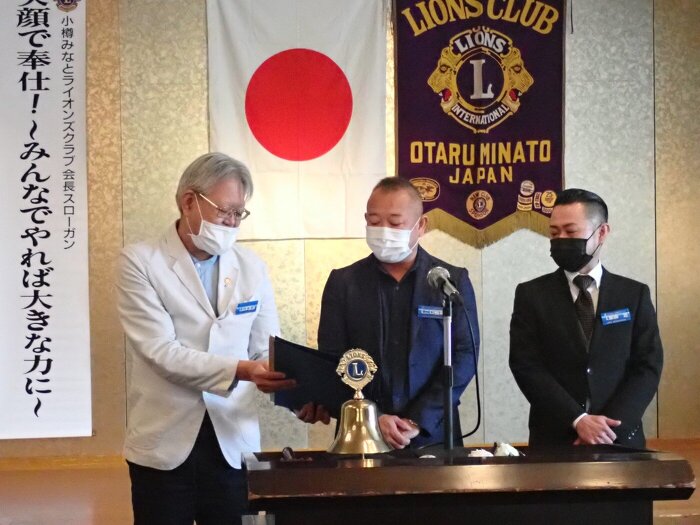 10月 07 新入会員入会式 2021年10月07日(木) ミーティング 小樽みなとライオンズクラブ 2か月ぶりに再開した例会。入会式も延期になっておりましたが、10/7(木)晴れて2名の新会員が入会しました。