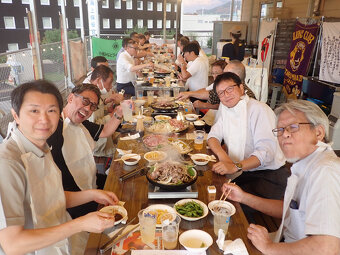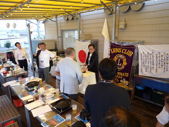 8月 07 ジンギスカン例会 2025年08月29日(金) ミーティング 小樽みなとライオンズクラブ 8月第一例会は三役が会場を設定、第3ふ頭に新設された「国際インフォメーション」2Fハイボールテラスでジンギスカン例会を行いました。小雨が降っていましたがテント屋根があり野外の例会は楽しく、利きビールゲームで盛り上がりました