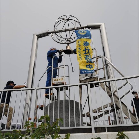 8月 09室蘭LC地球岬展望台「幸せの鐘」支柱磨き及び清掃活動