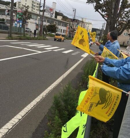 10月 10室蘭LC交通安全「人と旗の波運動」