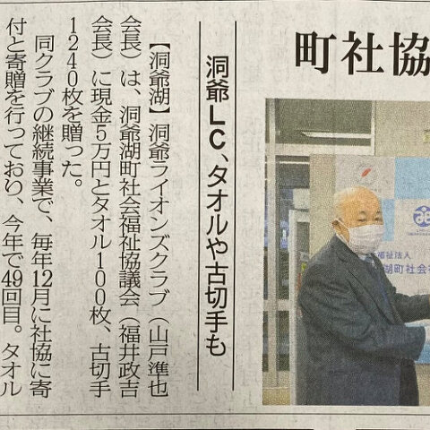 洞爺湖町社会福祉協議会へ行っている福祉金庫事業への寄付5万円は今年で...