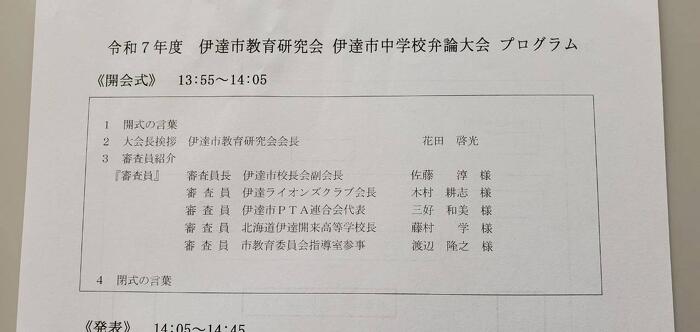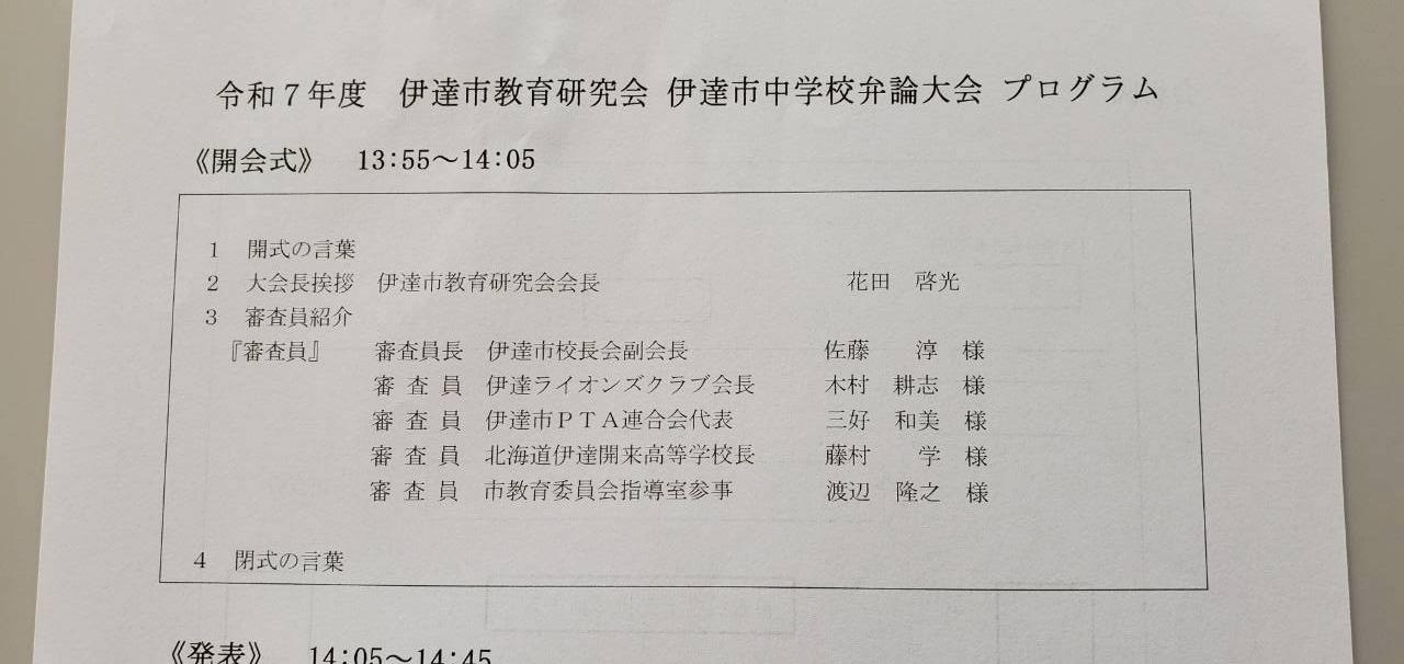 11月 05 弁論大会 2025年11月10日(月) アクティビティ 伊達ライオンズクラブ NEW 伊達市防災センターにおいて、令和7年度、伊達市教育研究会によります伊達市中学校弁論大会が開催されました。中学生の弁論大会視聴をさせて頂きました(クラブ11月第一例会の振替) 当クラブより、受賞者への盾、寄贈 また木村会長は審査員として、参加させて頂きました。 伊達市内、各中学校を代表される弁士さんのお話、貴重な機会に関わることができ、深く感謝申し上げます。
