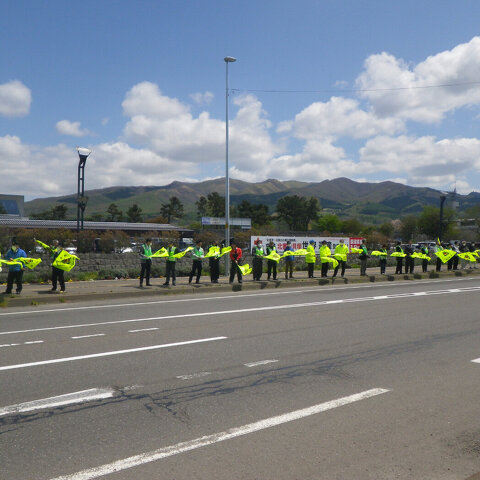 11月13日にカルチャーセンター前の国道で旗の波運動に参加しました