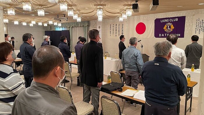 久しぶりとなった例会。初めに、国歌斉唱、ライオンズ・ヒム斉唱のあと早坂ライオンがリードしてライオンズの誓いを唱えました。