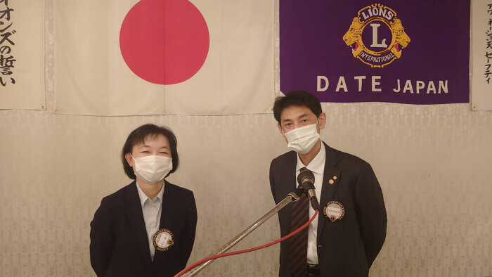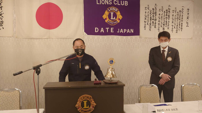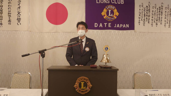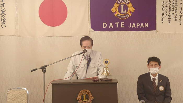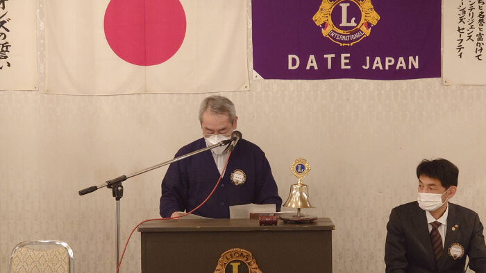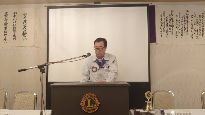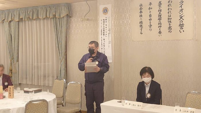 須藤敏幸LへLCIFから新たなレベルのPMJFピン(寄付累計$7000)が贈呈されました。 その後、須藤Lよりキャビネットの動向等について詳しい説明がありました。