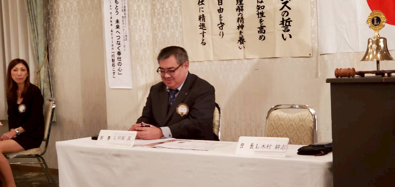 夜間例会なので、前半にて、早坂幹事より幹事報告
