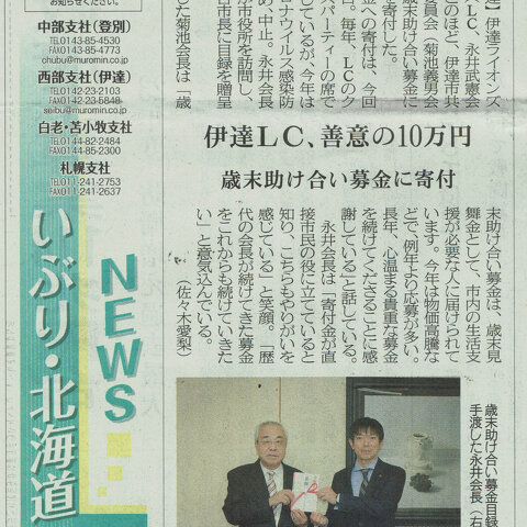 伊達ライオンズクラブ会長 永井武憲Lが室蘭民報10月19日朝刊に紹介され...