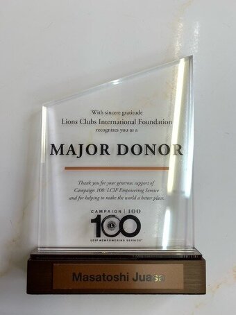 LCIFより壽淺 雅俊Lへ メジャーギフト誓約達成の栄誉を称える表彰盾が届きました。