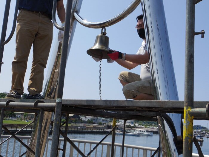 8月 05 みたら臨海公園「幸せの鐘」支柱磨き 2021年08月05日(木) アクティビティ 室蘭ライオンズクラブ ECHO Vol.2 炎天の中、みたら臨海公園にある「幸せの鐘」の支柱磨きを終えてから、公園の清掃活動を行なう。