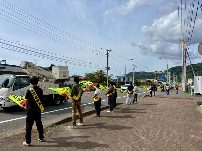 9月 24 令和7年秋の「町民総ぐるみ黄色い旗の波」運動へ参加しました 2025年10月12日(日) アクティビティ 洞爺ライオンズクラブ 9月24日(水曜日)13:30~14:00にあぶた体育館前で「町民総ぐるみ黄色い旗の波運動」に参加しました。