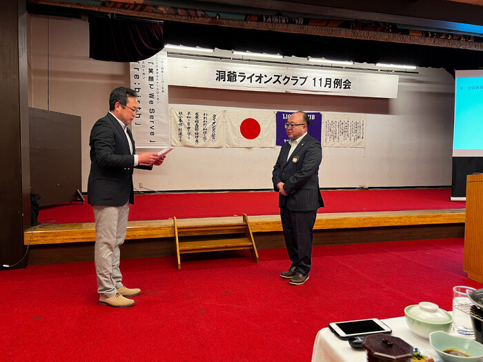 11月 20 11月定例会を開催しました 2024年11月27日(水) ミーティング 洞爺ライオンズクラブ 11月定例会では、国際協会長・元国際協会長より、L山戸ZCに届きました2024年ー2025年ミッション1.5 ゾーンコーディネーター任命書が届きましたので、L目良会長よりお渡しをしました。 また、整形外科医師である会長のL目良浩一より「変形ひざ関節症」をテーマにミニレクチャーを行いました。変形ひざ関節症は身近な病気との事もあり会員は熱心に傾聴していました。