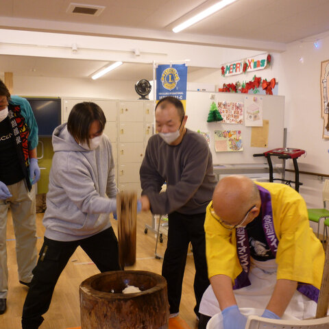 生活介護施設にて餅つき大会開催 施設に入所している方々にも杵を振り上...