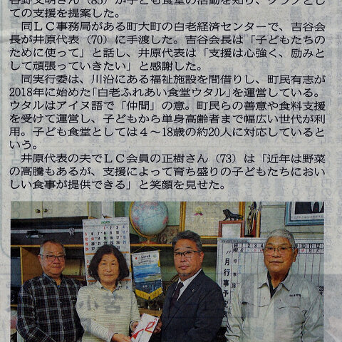 12月 17室蘭東ライオンズクラブ能登半島豪雨災害復興支援金