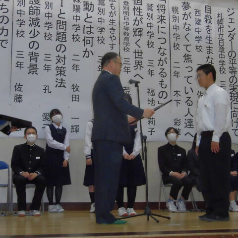 第41回少年の主張胆振地区大会予選会開催 最優秀賞に輝いた 登別中学校 ...