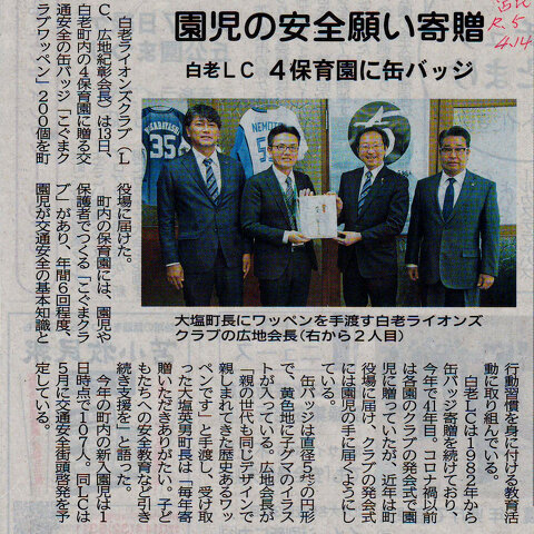 4月 13白老LC 4月 13白老LCこぐまクラブバッチ寄贈 役場を訪れ町内4保育園にこぐまクラブバッチを寄贈しました。1982年から...