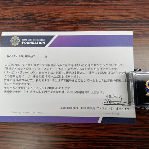 ・MJF献金$2,000(294,876円) $1,000×2回分 L児島 克己(3~4回目)