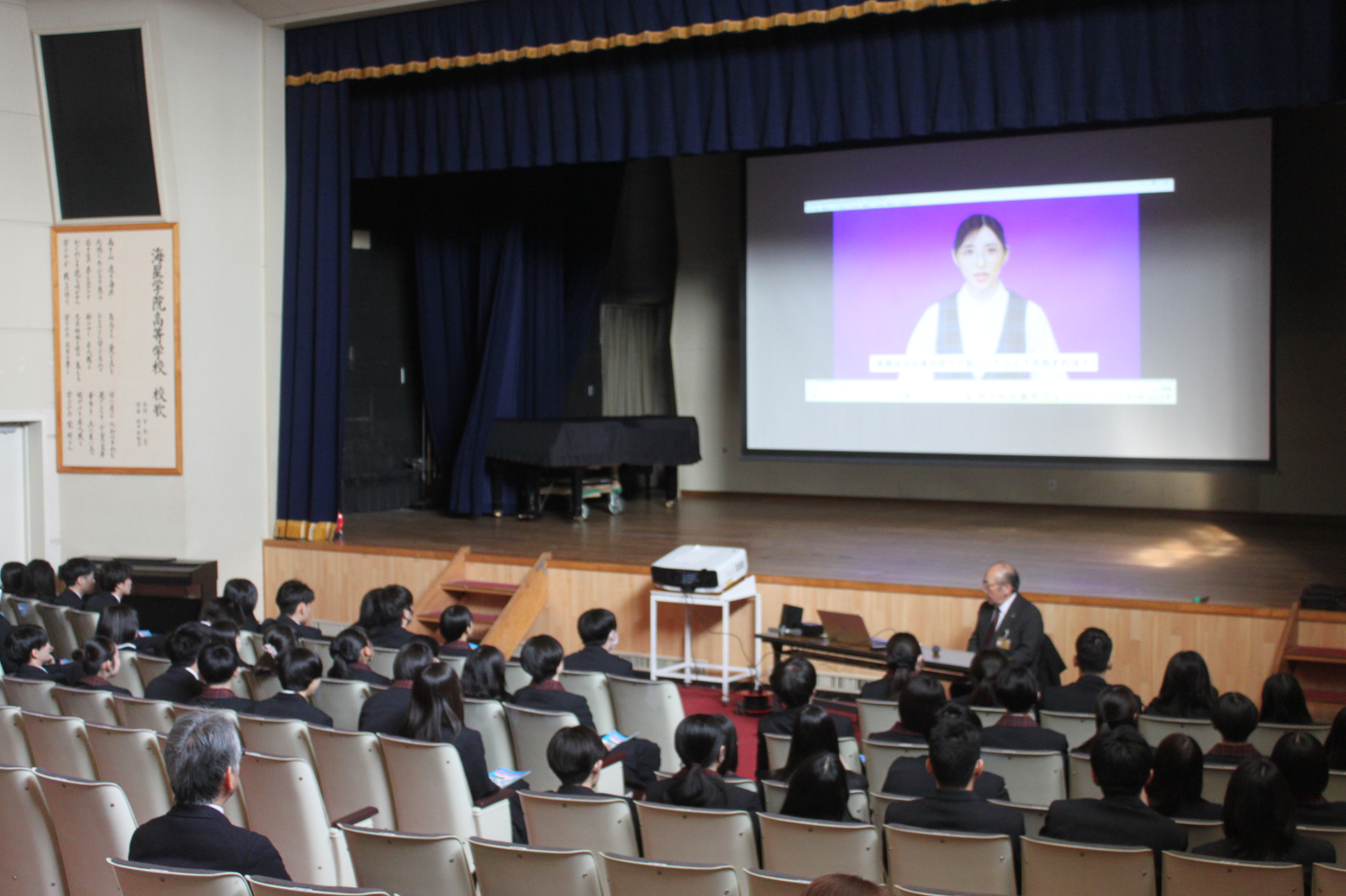 海星学院高等学校にて薬物乱用防止教室を開催。講師は室蘭ライオンズクラブのL髙橋國夫が努め、1年生50名が薬物の危険性について理解を深めていました。