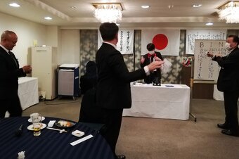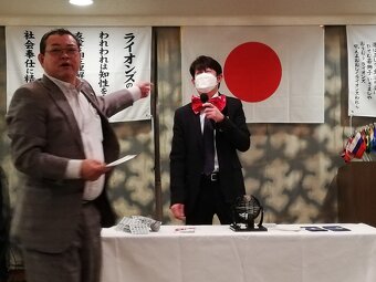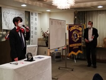 1月 14 第1423回 1月第1例会 2022年01月28日(金) ミーティング 室蘭東ライオンズクラブ ECHO Vol.7 転勤の為退会挨拶をするL寺島清一 4年9か月間、本当に有難うございました!! 待ちに待ったビンゴ大会!!参加料として1人1,000円回収。 早くビンゴになってしまい、抗議する早坂会計。 残り3名の枠に入った会長・幹事・計画副委員長。 最後まで勝ち残ったL及川計画副委員長のロアー。 令和4年1月14日(金)18:00より蓬崍殿にて、オブサーバー2名を加えた1月第1例会が開催されました。懇親会では楽しいビンゴ大会(計画委員長より、後方にビンゴになった方が豪華景品ルール)が行われ、会場は大いに賑わいを見せました。
