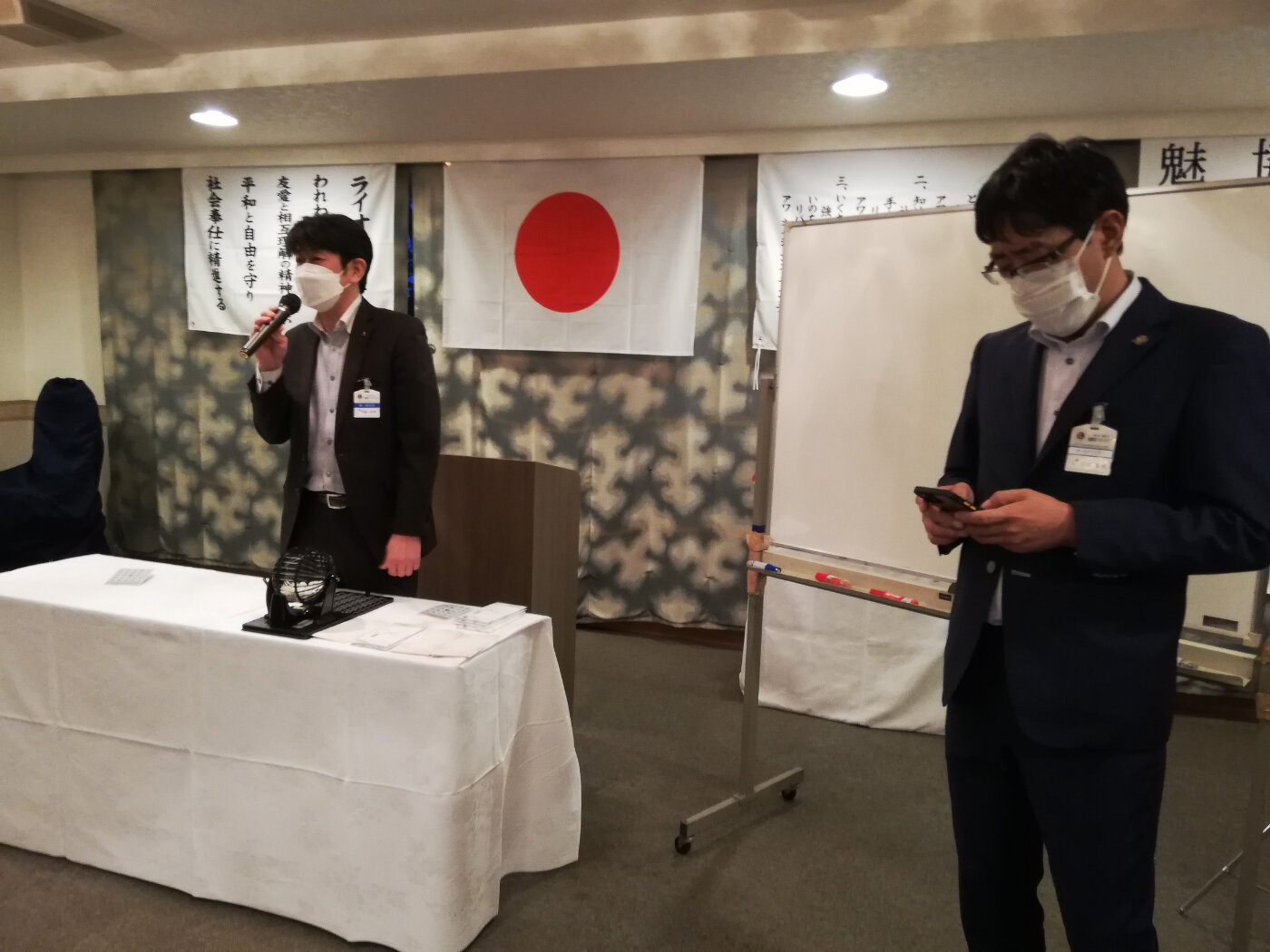 幹事報告後、三役の「We Serve」の祝杯で懇親会が始まり、当期最後のビンゴ大会とテールツイスターで大いに盛り上がりました。
