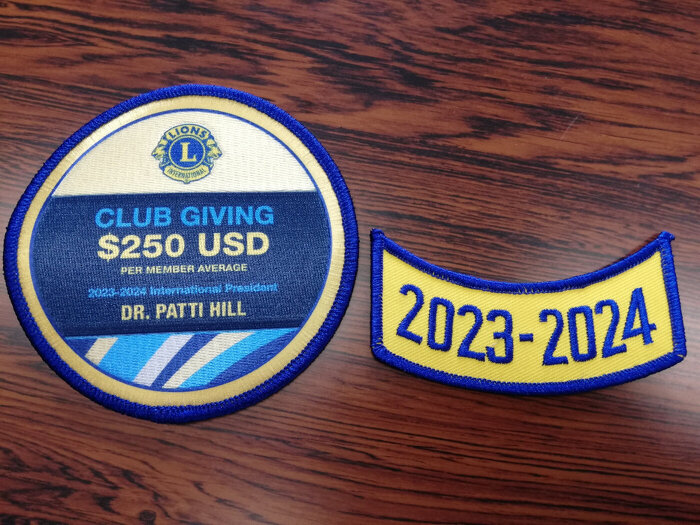 ・当クラブ→PMA寄付達成バナーパッチと100%会員サポートシェブロン