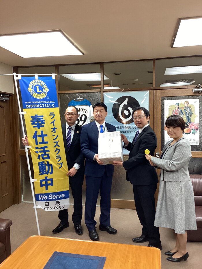 令和4年4月13日町役場を訪れ、町内の4保育園に200個のワッペンを寄贈しました。