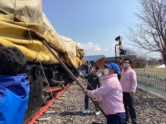 令和4年4月19日、春の恒例である「SLポロト号」の冬囲い外しの作業を行いました。