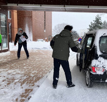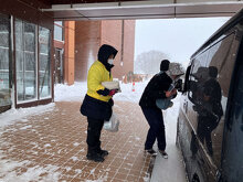 3月2日(土)、3日(日)大規模食糧支援を実施しました。今回はお米5キロと他食品を220世帯にお渡ししました。2日は今までの大量支援で一番苛過酷なお天気となりましたが、視界が悪い中皆さん頑張ってきていただき無事お渡しする事が出来ました。