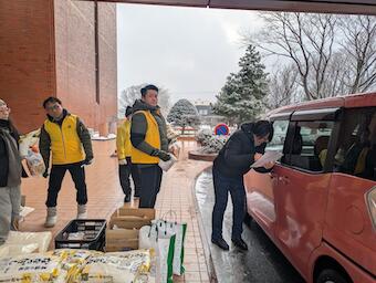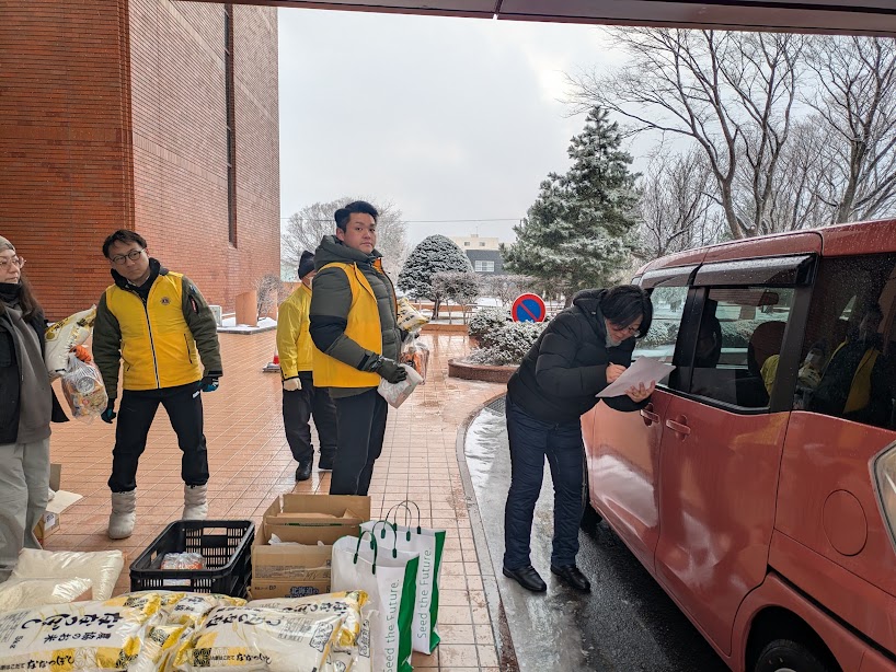 1月 17 ひとり親家庭食料支援〔支部:函館東LCこどもサポートクラブ〕 2026年01月26日(月) アクティビティ 函館東ライオンズクラブ NEW 1月17(土)、18日(日) 今年も冬の大規模食料支援を17日(土)は函館市役所正面玄関、18日(日)は桔梗福祉交流センターで実施し、二日間で200世帯に配布いたしました。冬の寒い時期子供たちにはたくさん食べてほしいです。 〔労力〕41時間 お名前確認 お名前確認 交通整理しています