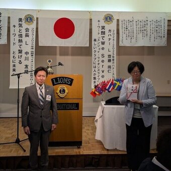当日はL佐藤止昭へ終身会員証書を伝達しました。また、2022年9月にLCIFメジャーギフトを達成したL馬場哲也元地区ガバナーへ誓約達成の盾が届いており会員へ報告しました。ご本人は出張でご不在のため後日お届けしました。