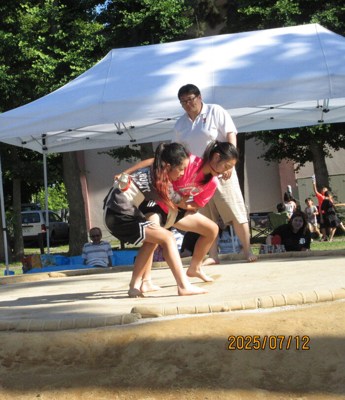 7月 12 上磯LC協賛 第15回わんぱく相撲大会 2025年07月23日(水) アクティビティ 上磯ライオンズクラブ ・小学生男女41名参加。トーナメント方式で開催。気温25℃と爽やかな風に恵まれた相撲日和。小学生とは思えない豪快な投げ技や押し相撲、プロ並みの物言いや負けて泣く子、女子の白熱した戦いや可愛い1年生のおどおどした取り組み等に会場は拍手喝采の連続。北斗市の高校相撲部員が指導やお手伝いをし楽しませてくれた。
