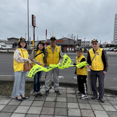 4月 06苫小牧ハスカップライオンズクラブ NEW春の交通安全アクティビティ 「旗の波運動・セーフティコール」実施