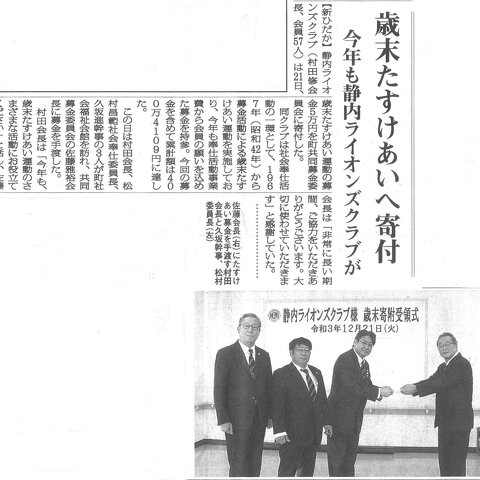 歳末助け合い募金寄贈