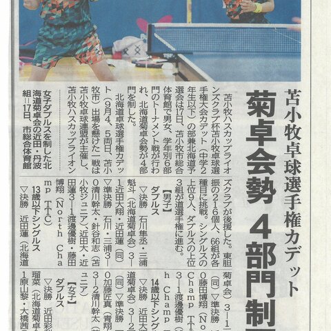 苫小牧ハスカップライオンズクラブ杯卓球大会新聞記事