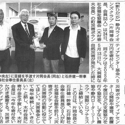 6月24日(月) 災害ボランティアセンター基金へ50,000円の寄付を...