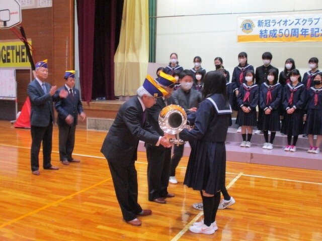 11月 17 新冠ライオンズクラブ結成50周年記念事業贈呈式 2021年11月17日(水) アクティビティ 新冠ライオンズクラブ ECHO Vol.5 11月1日、新冠中学校吹奏楽部へ楽器2台を贈呈いたしました。 楽器 バリトンサックス・ユーフォニアム各1台 1,020,000円