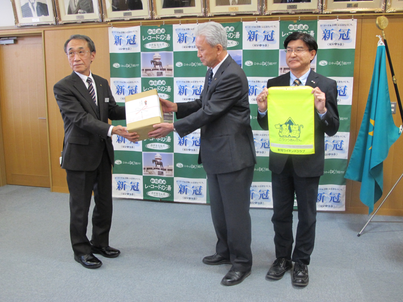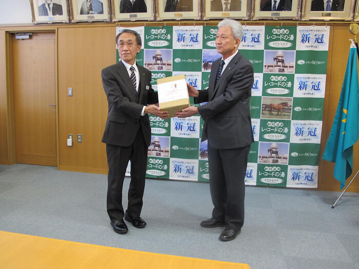 新冠町役場教育委員会を通し新入学児童へランドセルカバー贈呈