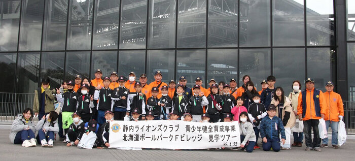 4月22日(土) ボールパーク見学ツアーACTを実施。町内の野球少年団24名を北海道ボールパークFビレッジの見学ツアーを行いました。また、町内の高校のボランティア局の生徒9名にお手伝いをお願いし、バスの中でのゲーム等を行いました。