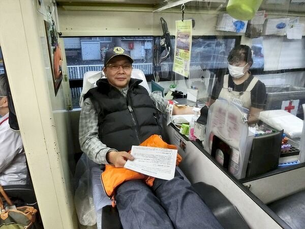 広報車にて町民に献血協力を呼びかけました。