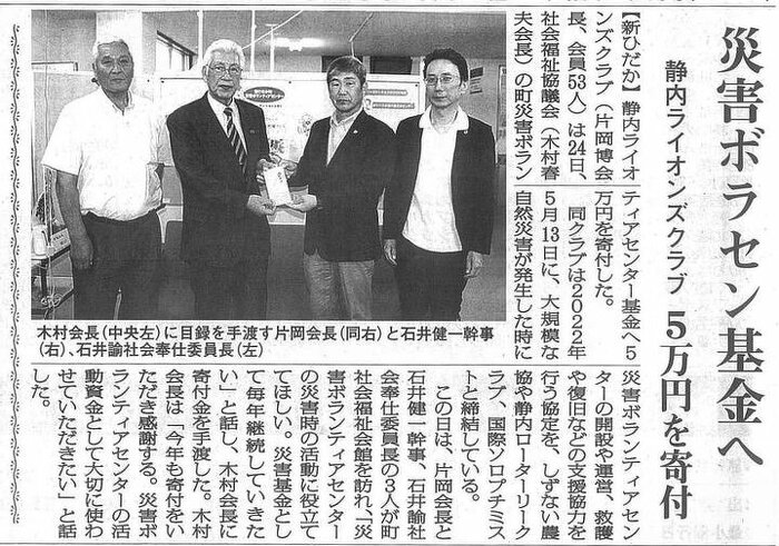 6月24日(月) 災害ボランティアセンター基金へ50,000円の寄付を行いました。