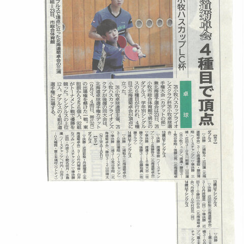●青少年育成委員会ACT 苫小牧ハスカップLC杯 苫小牧卓球選手権大会開...