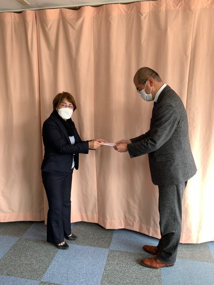 苫小牧スピードスケート少年団連合少年団へ2021年度支援金を贈呈式