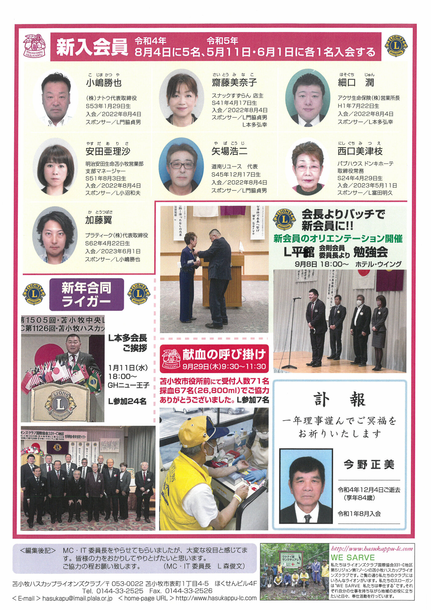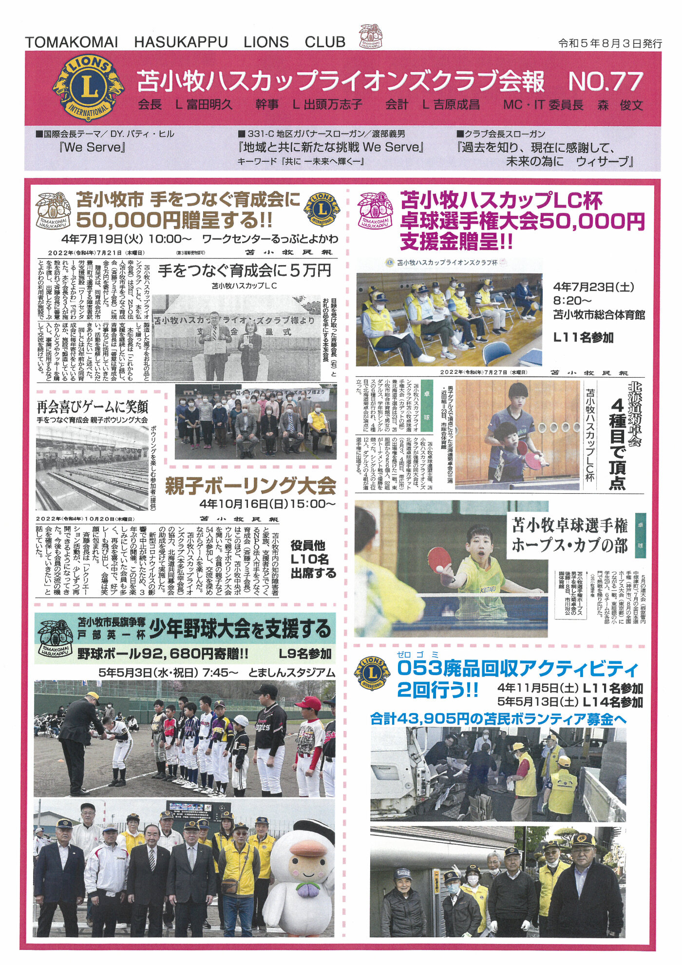 6. 苫小牧ハスカップライオンズクラブ会報NO.77号発行