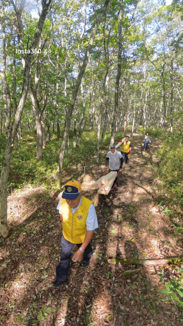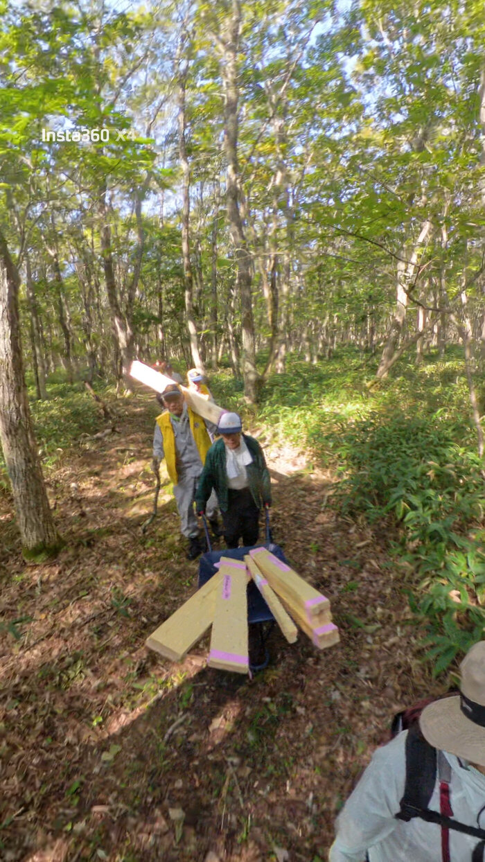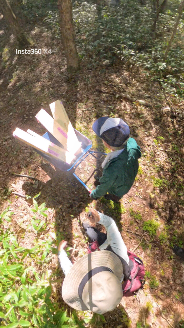 森の中の作業のため、熊撃退スプレーも持参してネイチャーセンター職員と連絡をとりながらの1日作業となった。