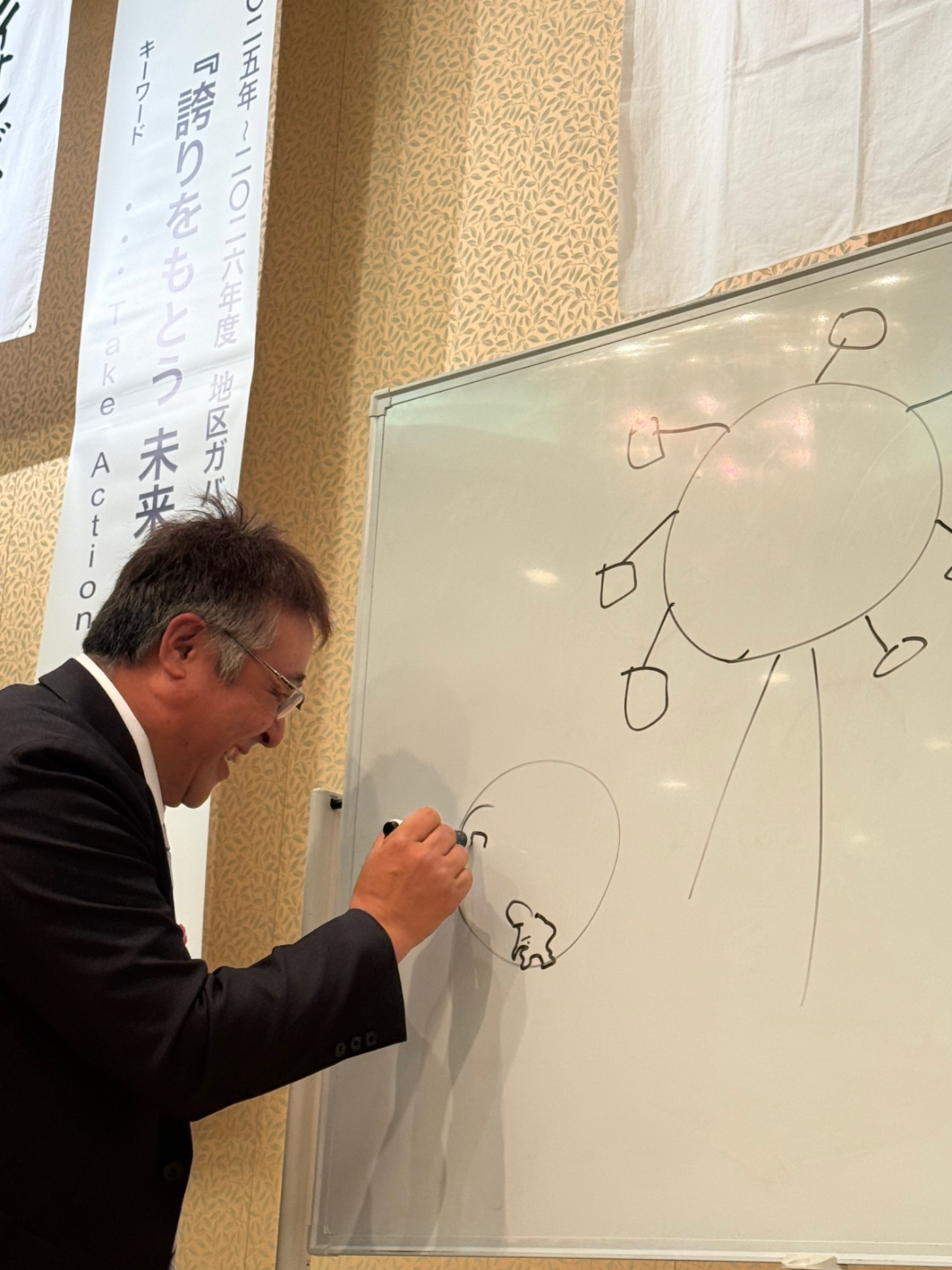 MC・IT委員長Ⅼ安田亜理紗は余興の「ライイオン・お絵描きですよ!」を計画から準備を進めて、余興は大盛り上がりでした(おえかきの絵写真で公開中)
