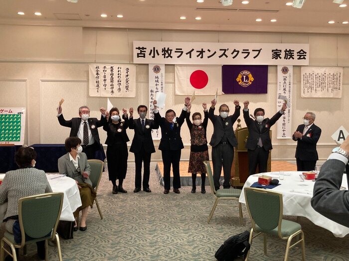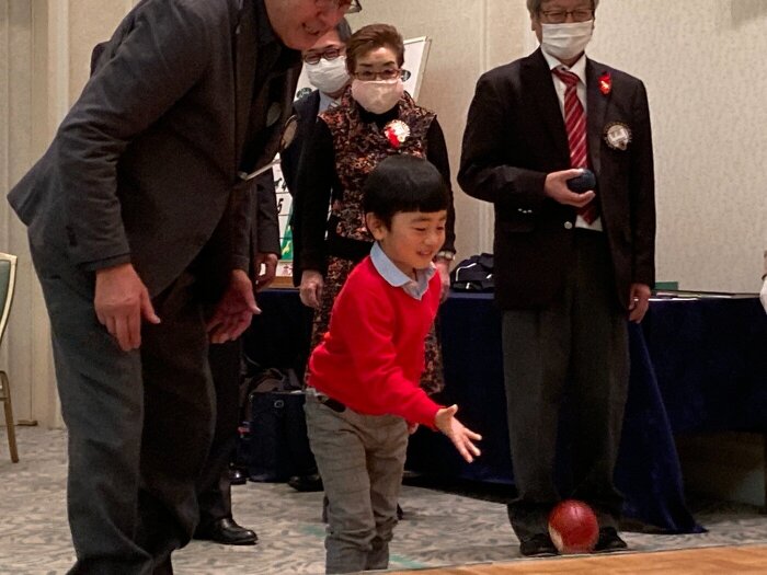 例会終了後、家族会へと続き、昨年はコロナウイルスの感染拡大にて残念ながら開催することができず、一年ぶりの家族会となりました。余興では、恒例の競馬ゲーム・ビンゴ大会・あと、今年のパラリンピックの競技の「ボッチャ」を、社協の方のご協力のもと楽しみました。L米田 のお孫さんにも参加してもらい、ライオン達の注目の中(笑)堂々とボッチャのボールを投げる姿はL米田 にそっくりでした(^ム^)