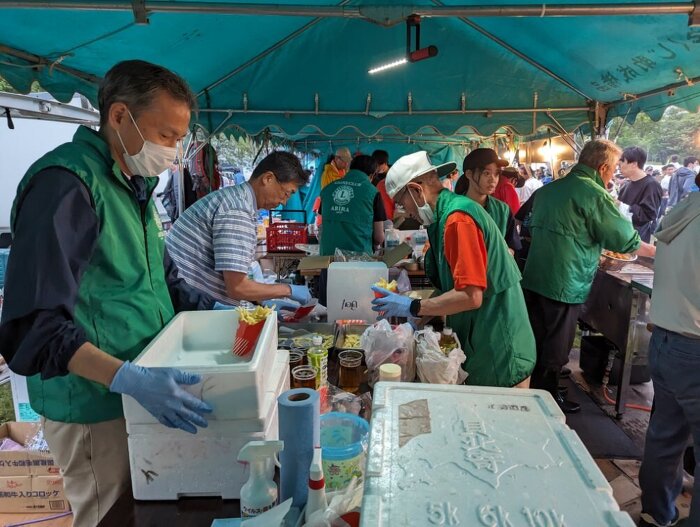 唐揚げをメインに揚げ立てのフライドポテト、和牛入りコロッケ、メンチカツ、チーズいももちを販売しました。