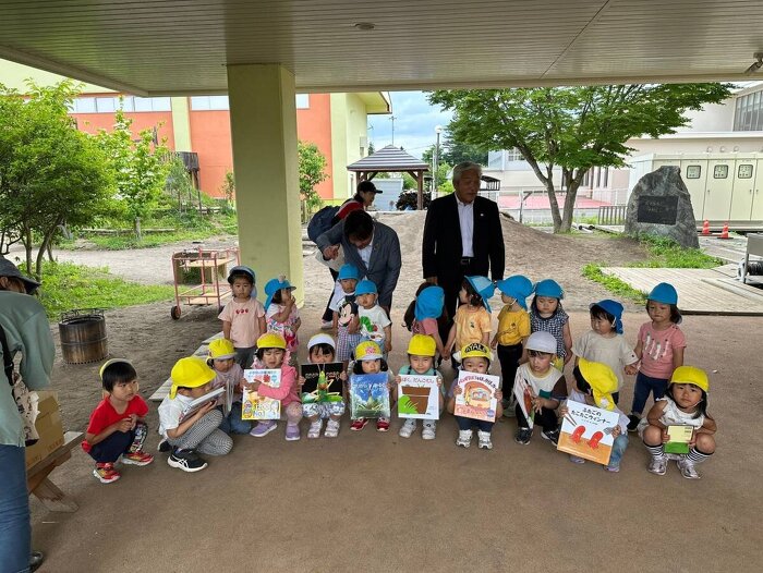 町内認定おいわけ子ども園へ絵本を寄贈、会長。幹事が寄贈式に出席致しました。